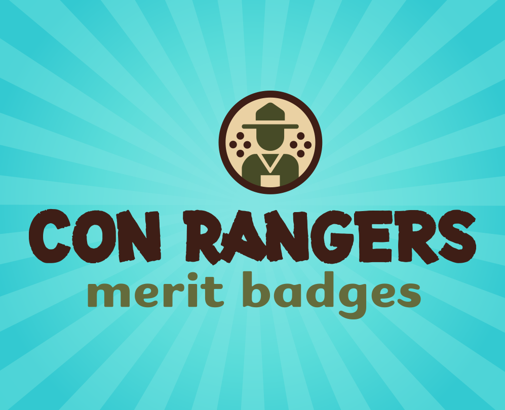 The Con Rangers design and sell merit badges and related merchandise centered around convention-specific achievements. Their focus is to encourage community within the convention sphere through the celebration of both new and familiar shared experiences, such as forgetting to eat until hall closes or getting lost on the exhibit floor.
