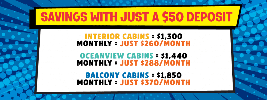 - Book any cabin for only $50 per person!